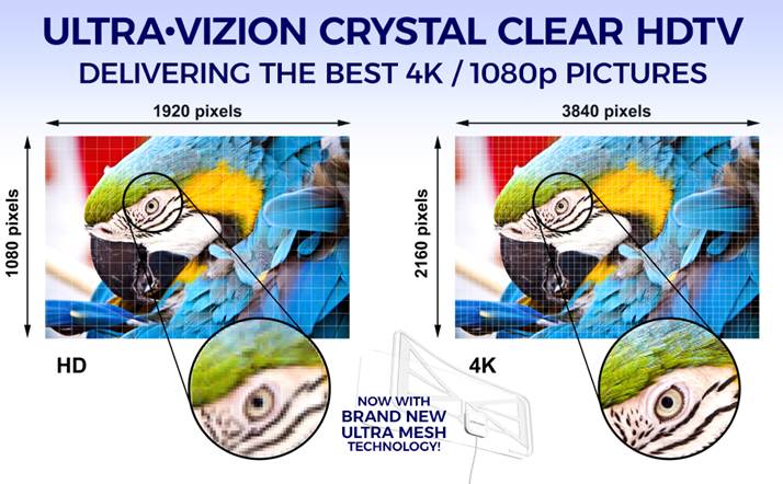 Advanced Reception Technology: Engineered for superior signal strength, ULTRAVIZION’s advanced tech captures more channels with better clarity, even in challenging reception areas.