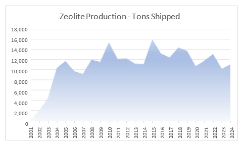 As of May 22, 2024, the BRZ Project is estimated to contain the following in-situ Mineral Reserve, reported above a cutoff grade of 100 meq/100g CEC (Cation Exchange Capacity). These estimates are based on validated drill data and block modeling of zeolite-bearing tuffs, incorporating all drilling, sampling, and technical data available. At current average annual production rates, the Proven and Probable Reserve could theoretically support operations for more than 400 years. This extended mine life reflects the modest scale of current throughput relative to the size of the reserve. Should production be scaled up significantly – e.g., by a factor of 20 – the Reserve would still support operations for over 20 years, demonstrating the project’s flexibility and longevity under a range of development scenarios.