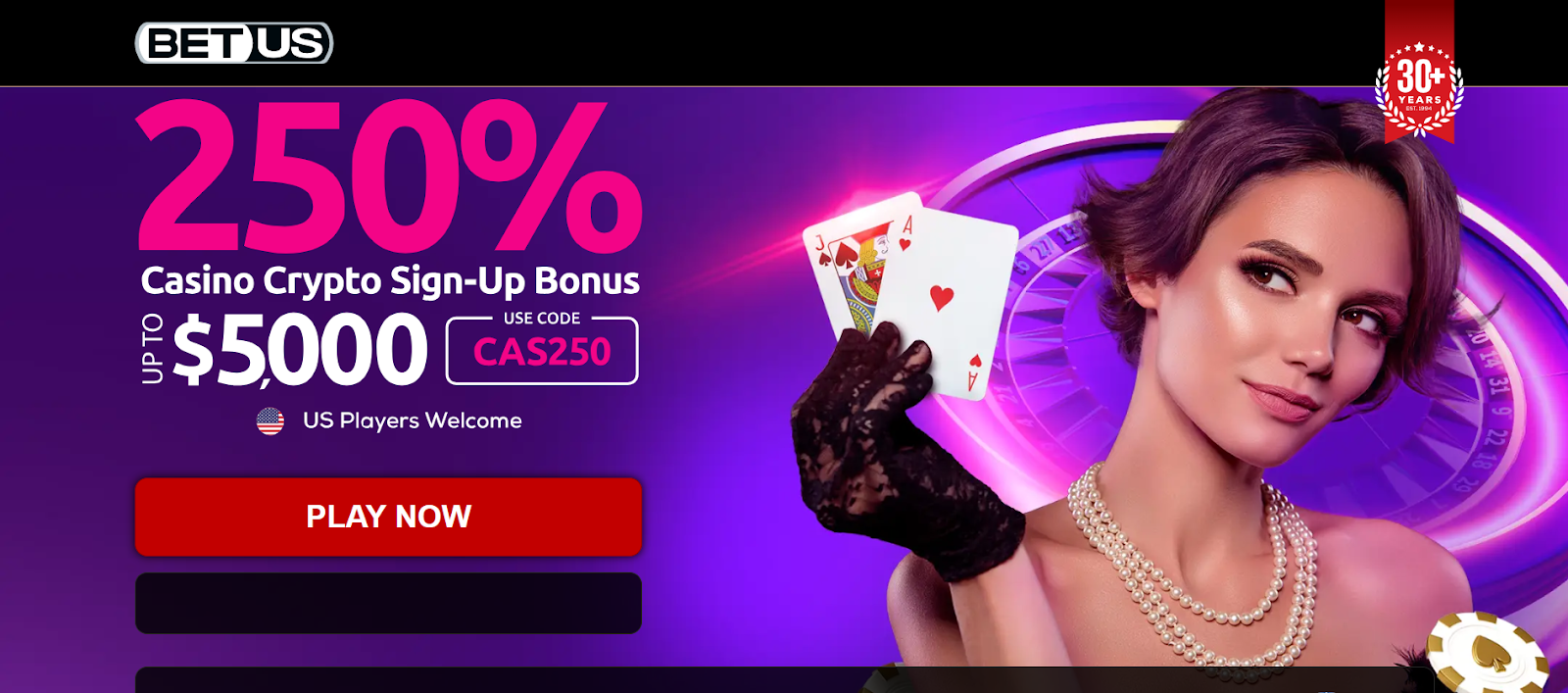 BetUS: 200% casino bonus up to $5,000 with code CAS200; 250% crypto bonus up to $5,000 with code CAS250