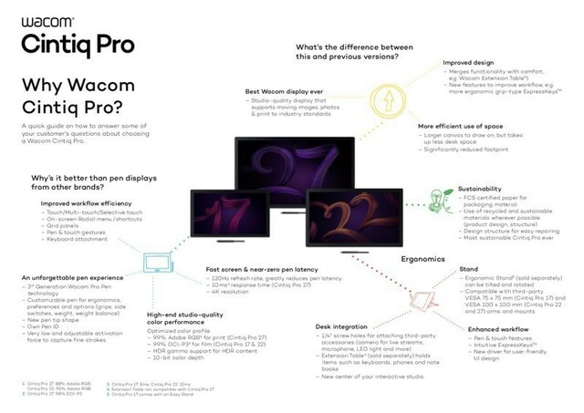 TOKYO and PORTLAND, Ore. and DÜSSELDORF, Germany, Oct. 19, 2023 /PRNewswire/ — In keeping with 40 years of technology leadership, Wacom, the pioneer of digital pen technology, announces the Wacom Cintiq Pro 17 and Wacom Cintiq Pro 22, two additions to the Cintiq Pro family. These new pen displays share the same revolutionary technology of the recently introduced Wacom Cintiq Pro 27: the most advanced color-accurate displays capable of producing 1.07 billion colors, an industry leading refresh rate of 120Hz which can lower pen latency, and the fully customizable Pro Pen 3.
