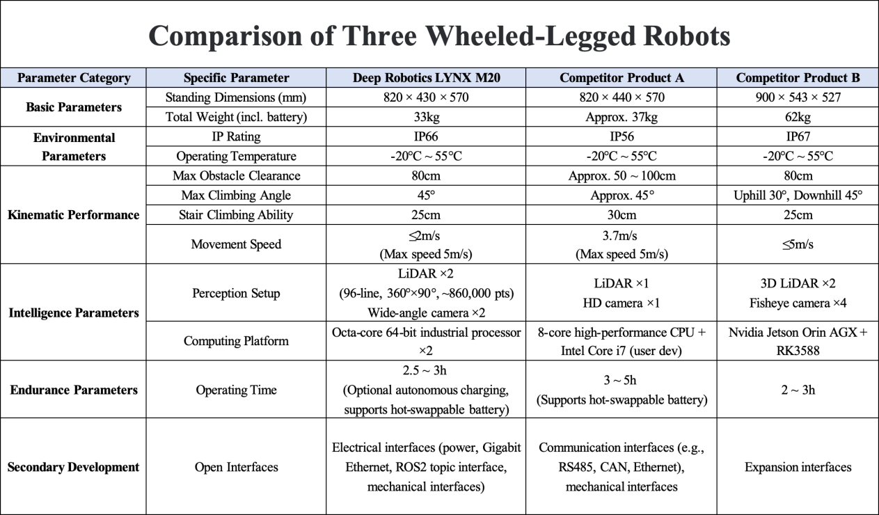 Based on the evaluation, the wheeled-legged robot sector has entered a stage where product capabilities are validated through real-world performance. For industrial customers, the core of product selection has shifted from chasing extreme “parameter metrics” to matching their own “real-world scenario needs.” Among the three mainstream products compared, DEEP Robotics’ LYNX M20 has built a leading practical advantage through its tolerance to extreme environments, high all-terrain mobility, a mature development ecosystem, and deep industry deployment accumulation. It is truly the all-round benchmark product of the current era.