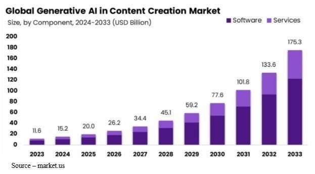 Forecasts – Everyone is projecting that the use of AI in the content creation/production market will experience steady,substantial growth in the years ahead.